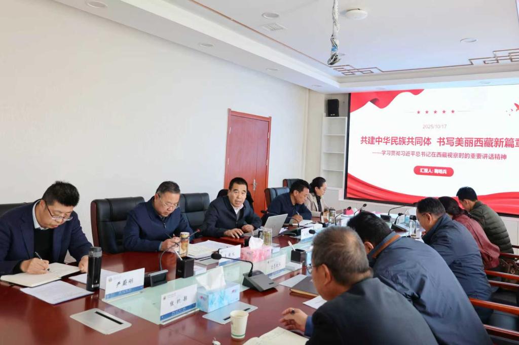 鞠明兵作习近平总书记视察西藏时的重要讲话精神宣讲时指出,2025年8月20至21日,习近平总书记亲率中央代表团出席自治区成立60周年庆祝活动,亲切看望慰问各族干部群众,听取自治区党委和政府工作汇报,发表重要讲话、作出重要指示,为西藏工作指明了前进方向、提供了根本遵循。他强调,要完整准确把握习近平总书记视察西藏并出席自治区成立60周年庆祝大会的重大意义,不断汲取奋进新征程的力量;要深刻领会以习近平同志为核心的党中央推动西藏各项事业取得的历史性成就,不断坚定强国有我的信心决心;要坚持以习近平总书记在西藏视察时的重要讲话精神统揽全局,不断开创西藏长治久安和高质量发展新局面。