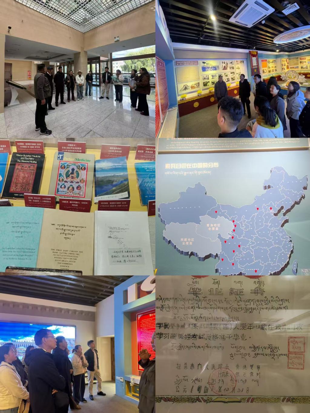活动围绕“理论结合实物”展开,分为两大核心环节:一是通过博物馆讲解员的专业介绍,系统梳理区藏医院从建院初期到如今的发展脉络,重点了解其在藏医药临床实践、人才培养、文化传承等方面的建设成果,进一步明确“院校结合”在教学与实践衔接中的重要价值;二是聚焦馆藏核心文献《四部医典》,现场参观100余部不同时期、不同版本的典籍原件,其中部分版本已被精准译为英、德、法、日、俄、蒙等多种语言,不仅直观展现了这部藏医药经典的传播广度,更让教师们深入感受其作为“藏医药史学教学活教材”的独特作用,为后续优化课程内容、丰富教学案例提供了鲜活素材。